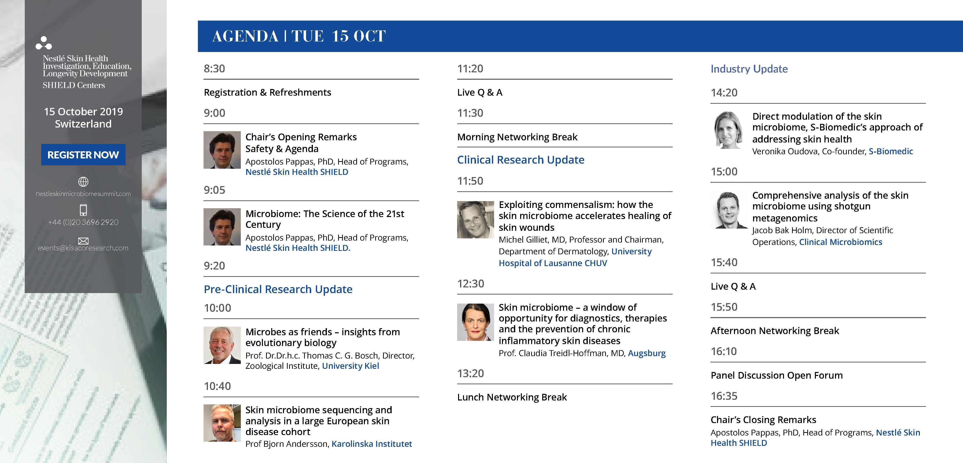 Nestlé Skin Health SHIELD cordially invites you to Switzerland on Tuesday 15th October to the 2nd Skin Microbiome Summit to learn about the newest most disruptive research, along with networking and open discussion around the latest innovation in the field.
